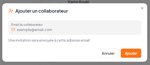 - Une fenêtre s'ouvrira. Saisissez l'adresse e-mail de la personne que vous souhaitez inviter, puis cliquez sur "Ajouter".