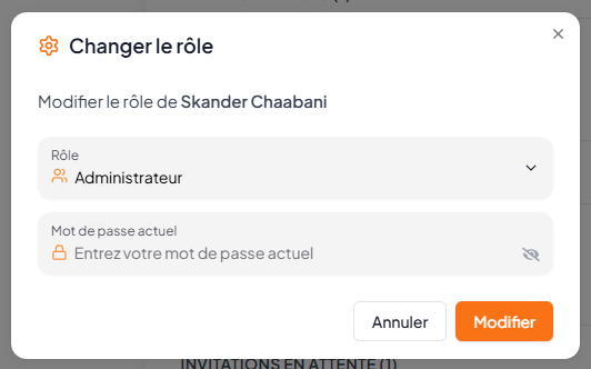 - Dans la fenêtre qui apparaît, choisissez le nouveau rôle ("Administrateur" ou "Collaborateur").